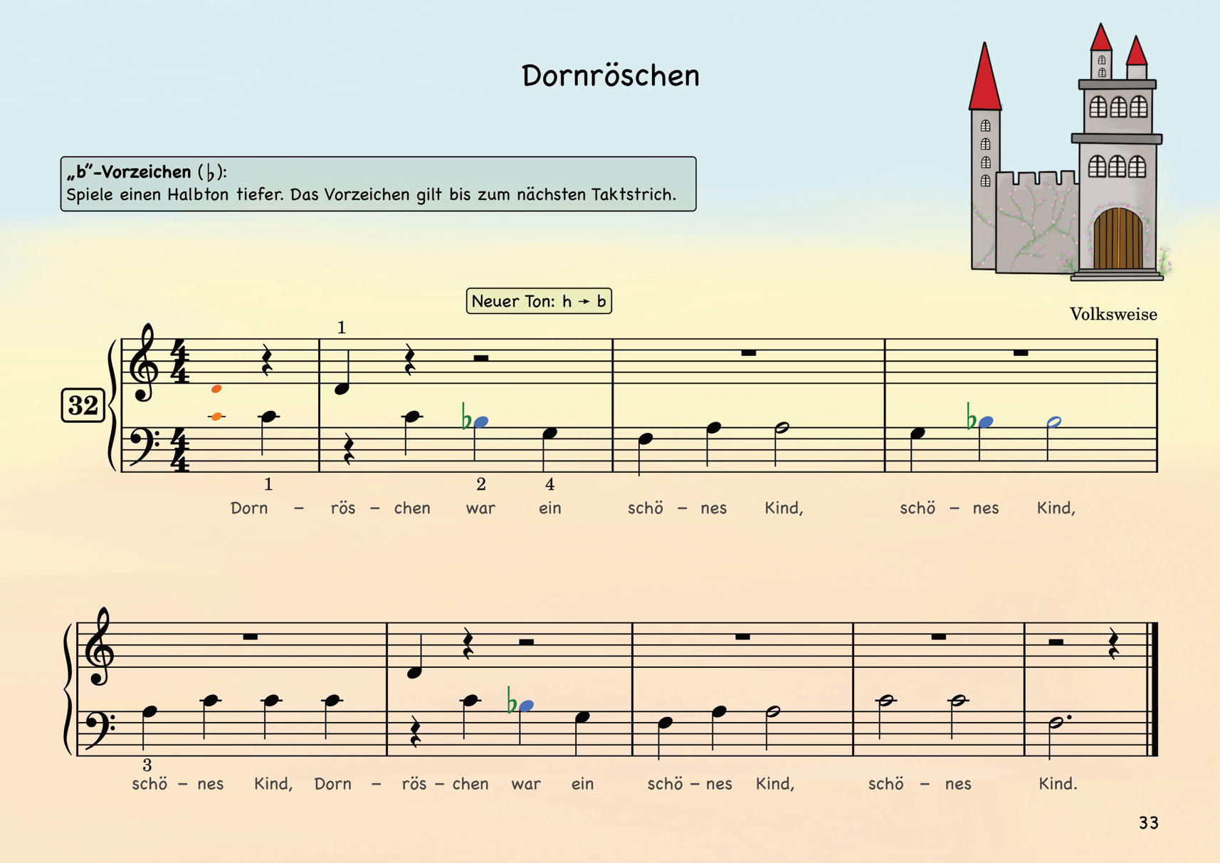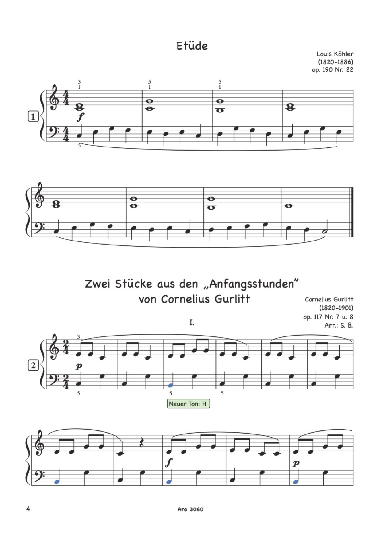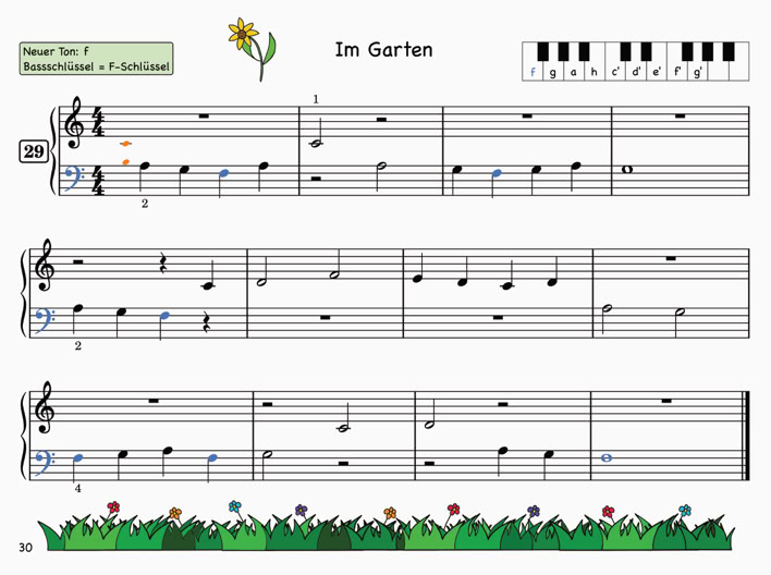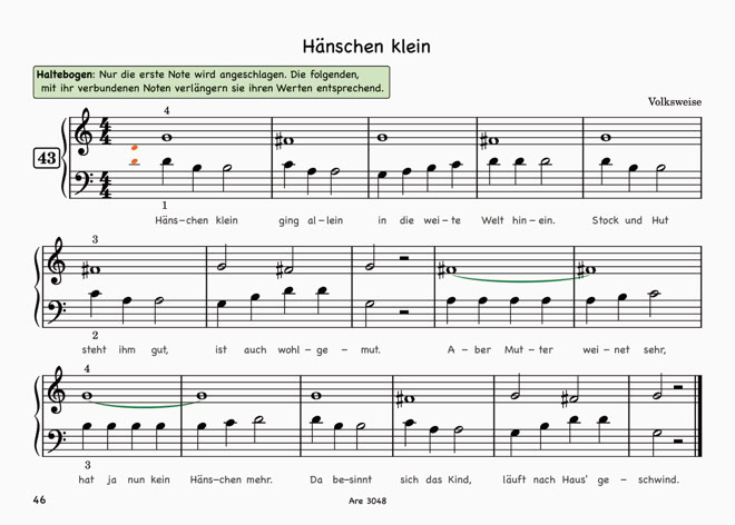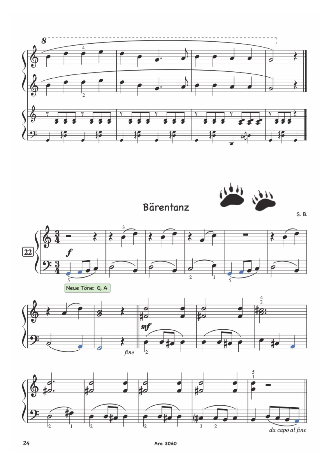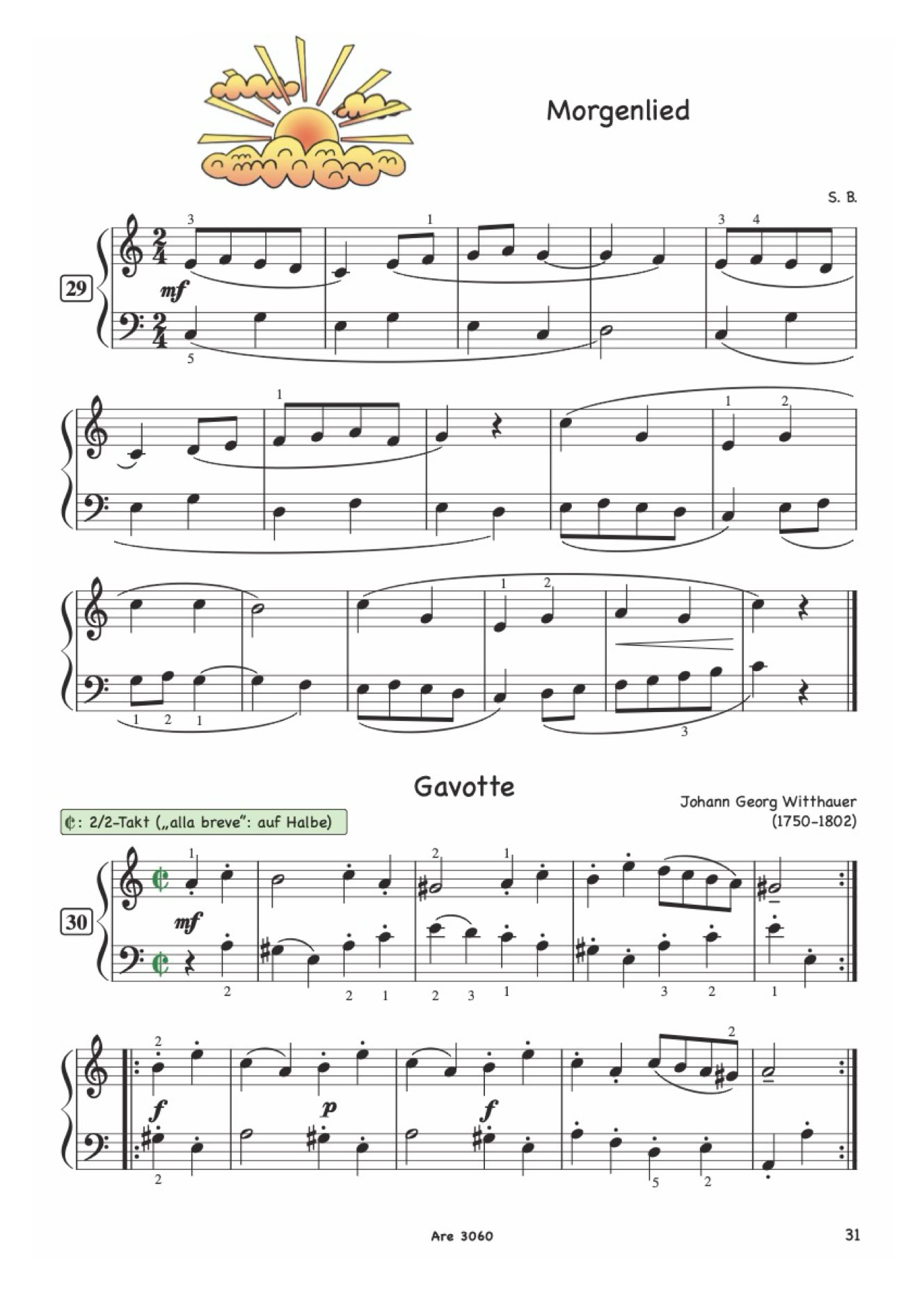 Um das Notenlesen zu fördern, werden Fingersätze nur dort verwendet, wo sie notwendig sind.