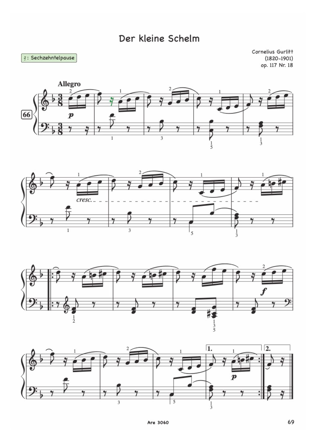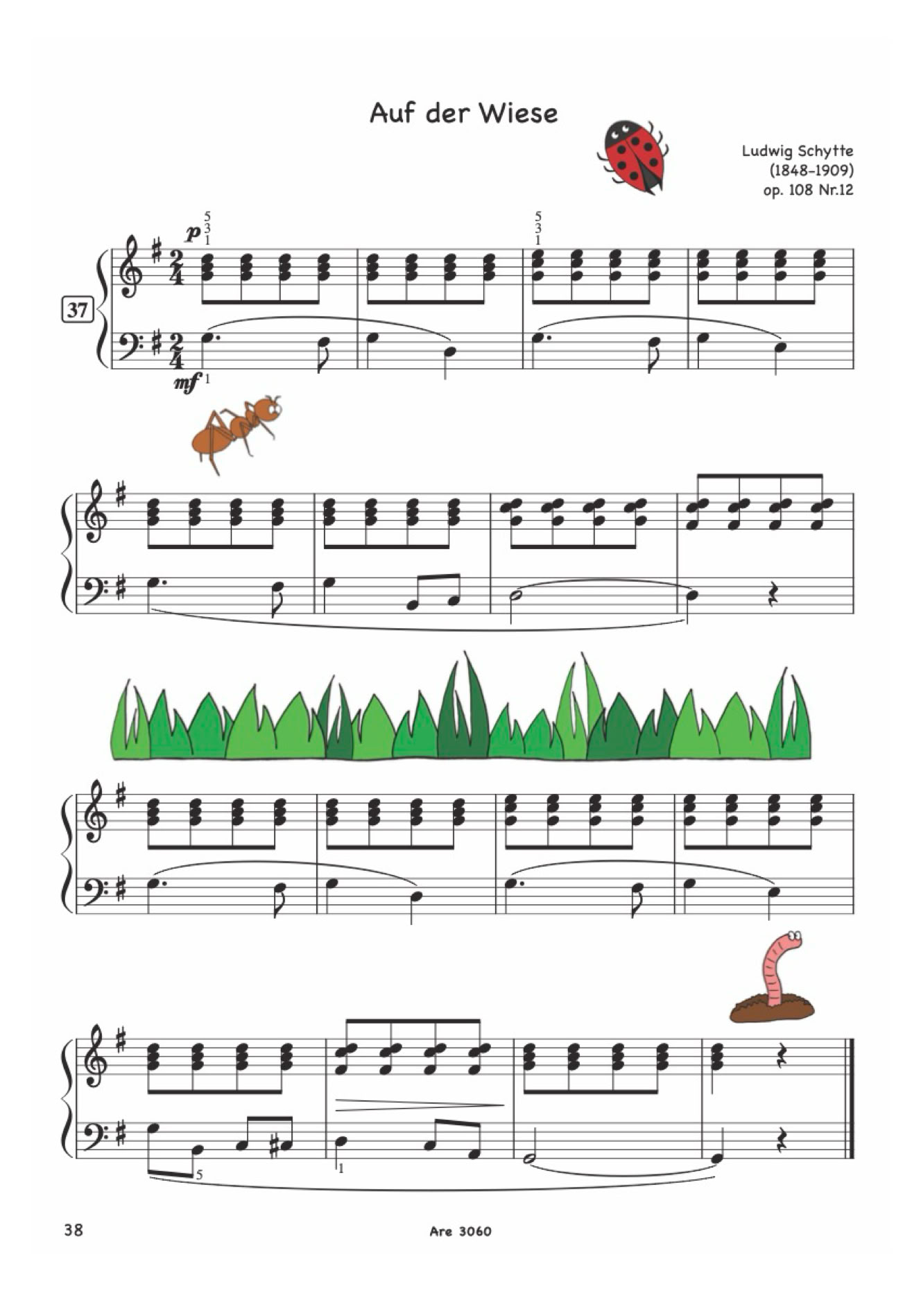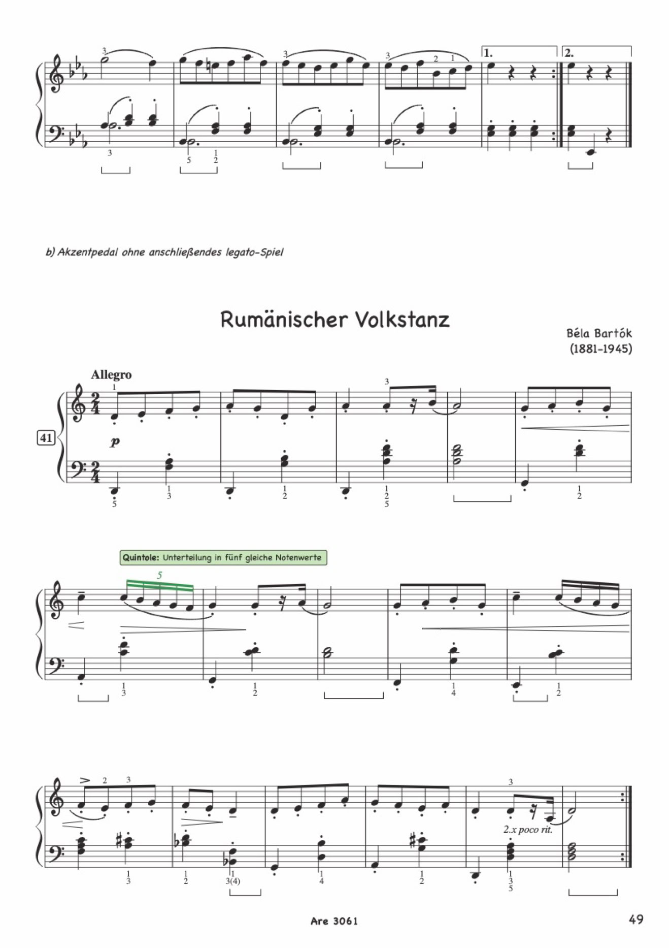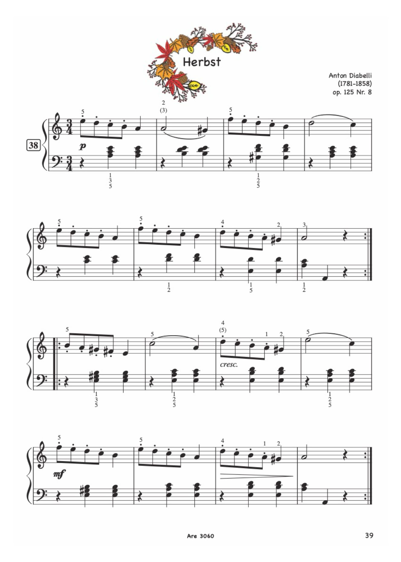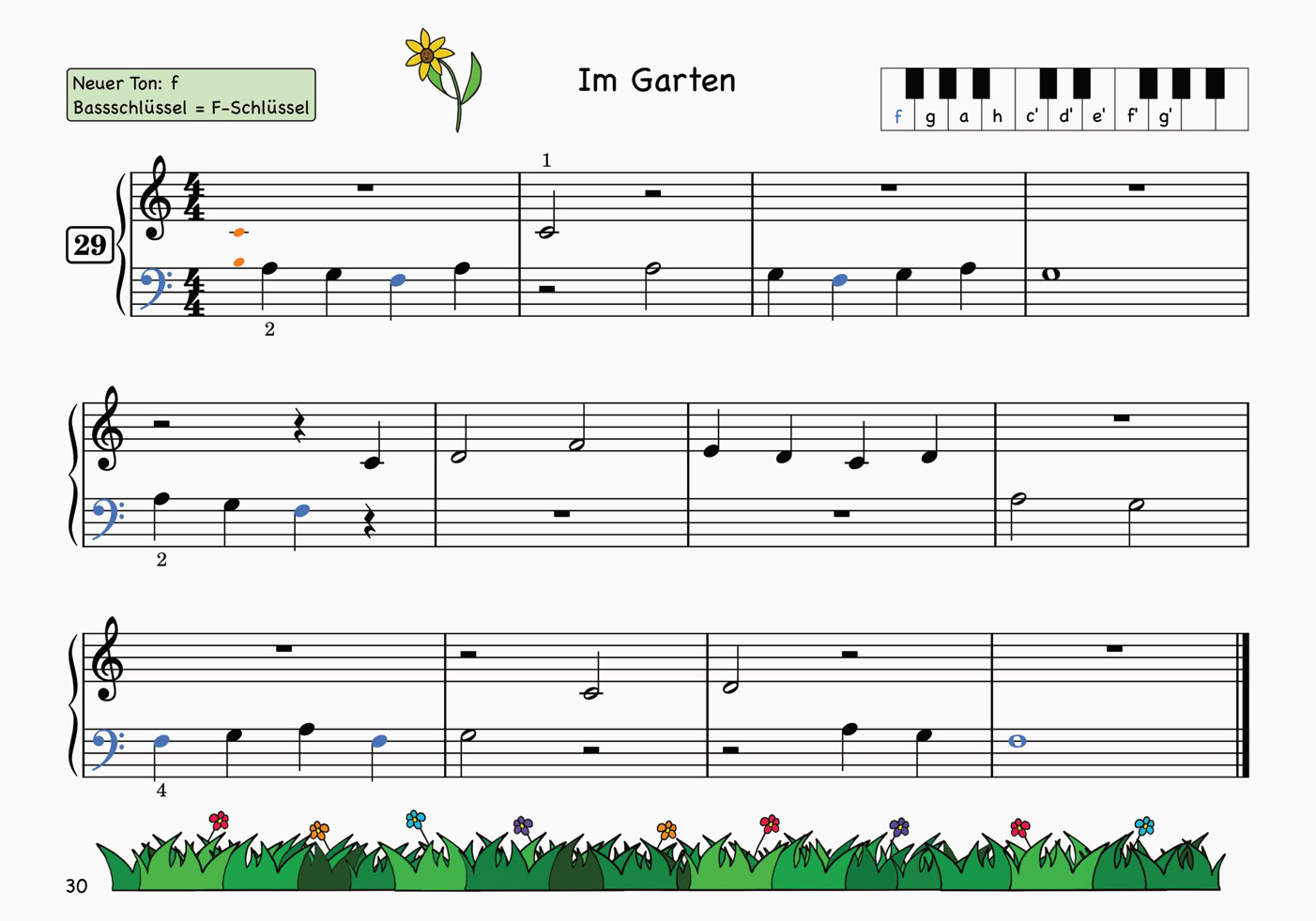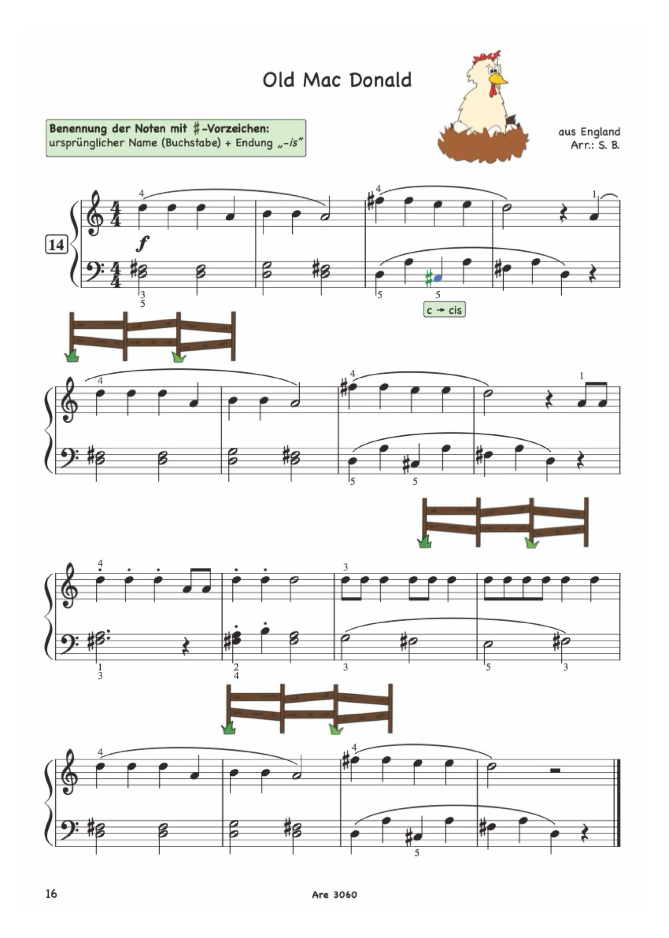 Um das Notenlesen zu fördern, werden Fingersätze nur dort verwendet, wo sie notwendig sind.