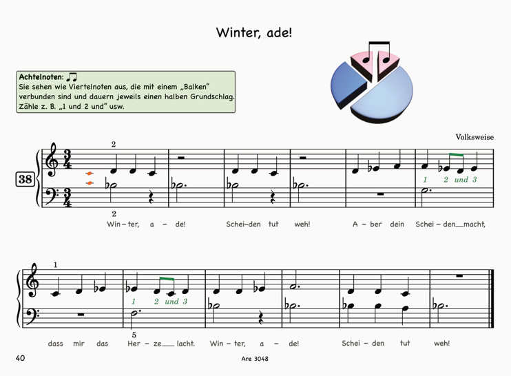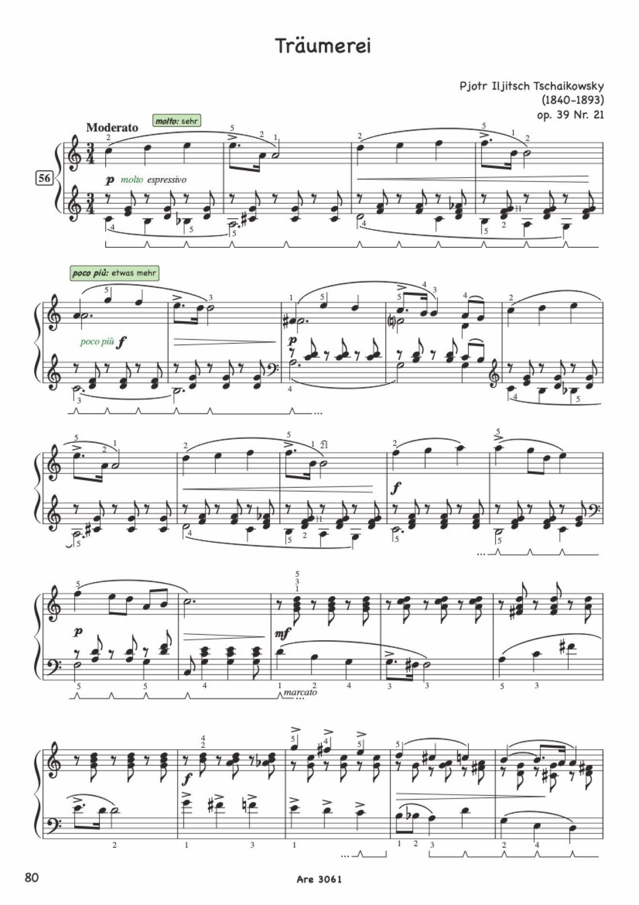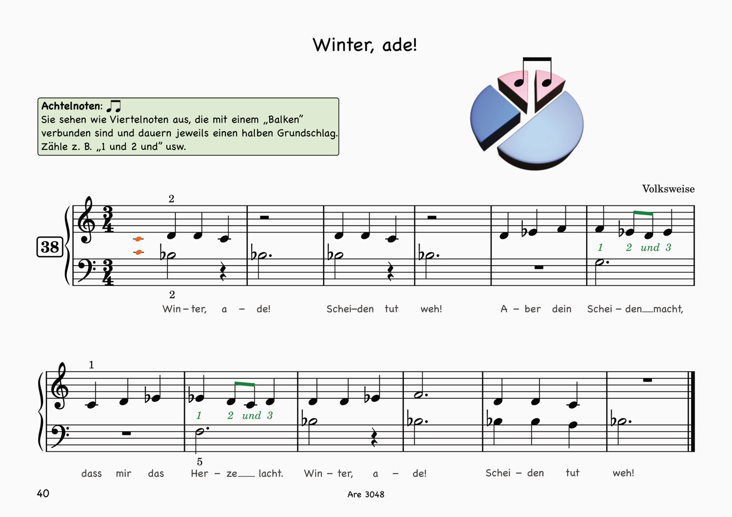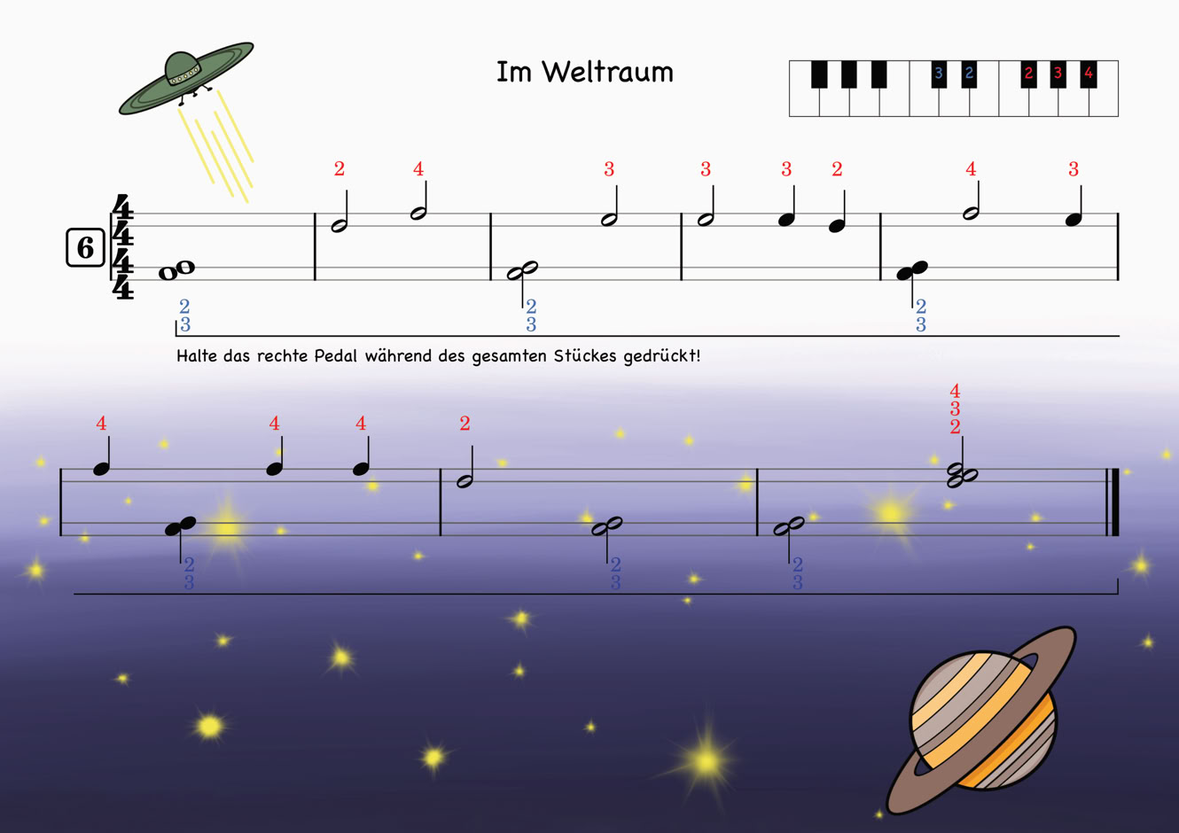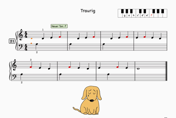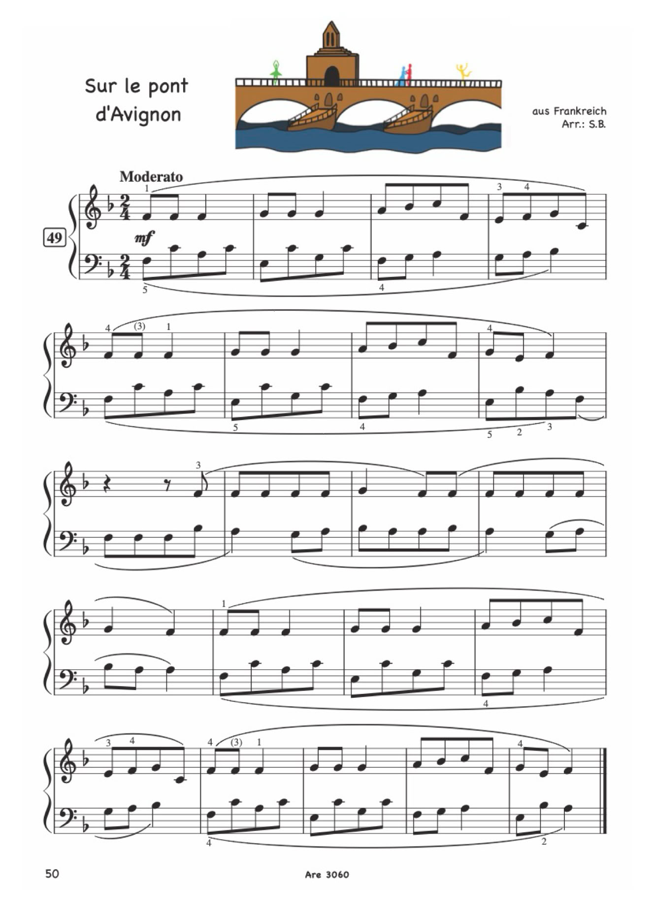 Um das Notenlesen zu fördern, werden Fingersätze nur dort verwendet, wo sie notwendig sind.