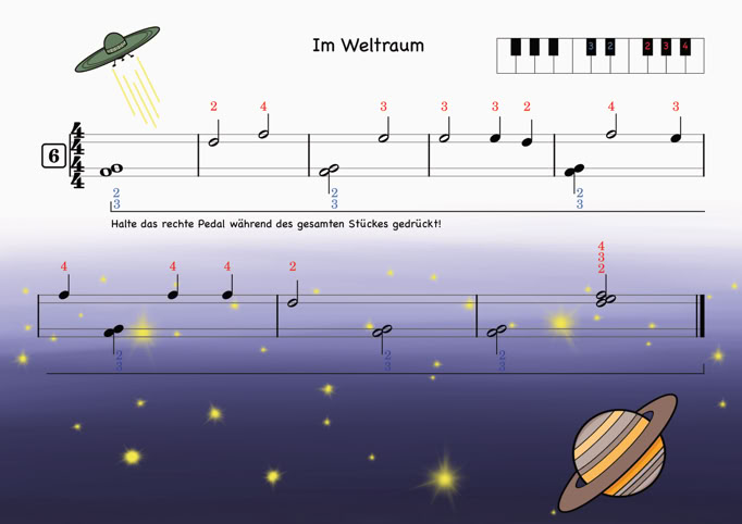 Die Angabe der Daumenlage vereinfacht es, sich in Anfangsunterricht auf der Klaviatur zurechtzufinden, besonders auch beim Üben zuhause.