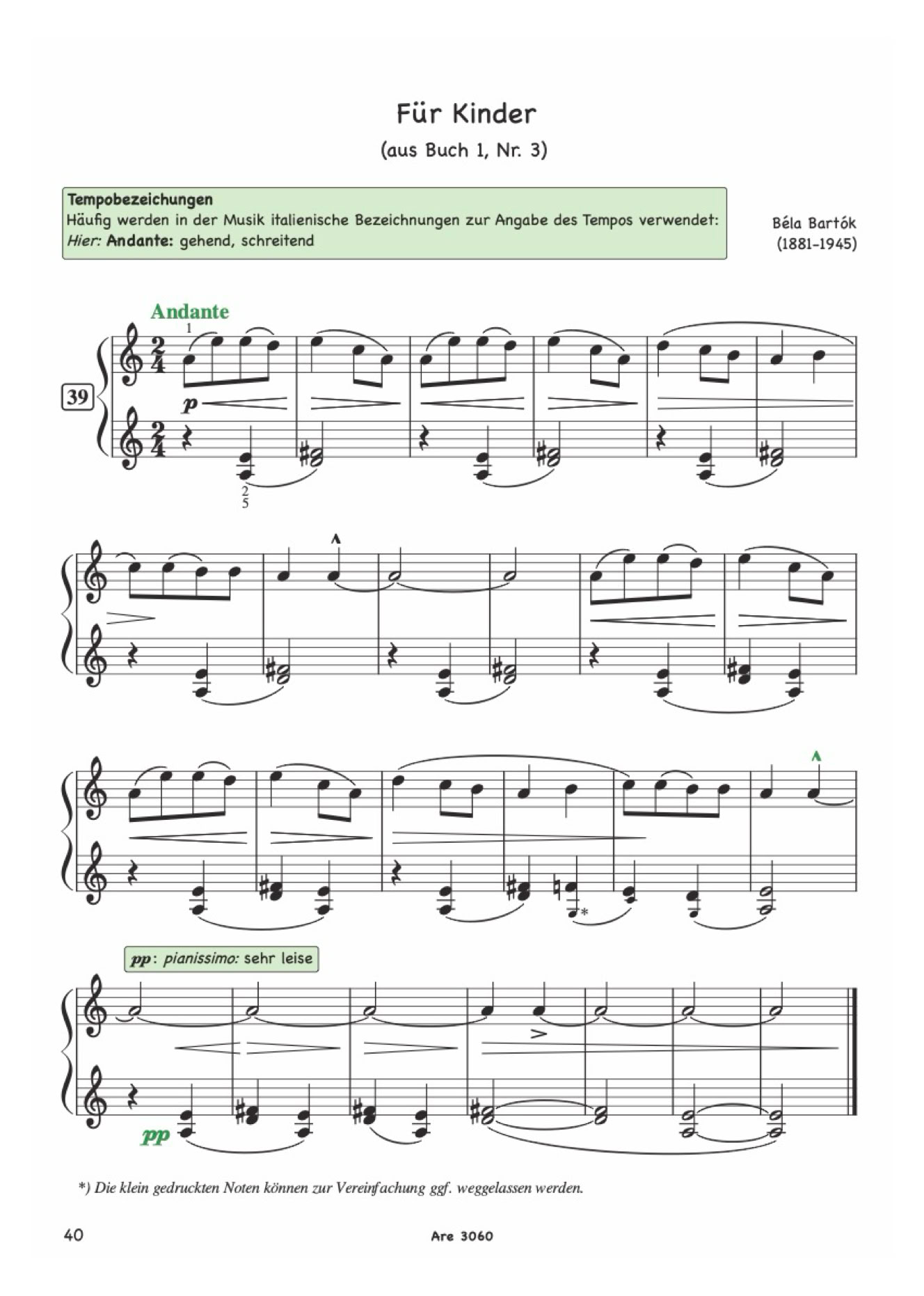 Auch unabhängig von den Bänden 1 und 2 kann dieses Buch als Sammlung wertvoller Spielstücke optimal im Unterricht verwendet werden. Mit 64 Originalwerken von Bach, Bartok, Beethoven, Brahms, Burgmüller, Chopin, Clementi, Czerny, Diabelli, Duvernoy, Grieg, Gurlitt, Händel, Haydn, Köhler, Kuhlau, Liszt, Majkapar, Mozart, Schubert, Schumann, Schytte, Tschaikowsky und Türk.
